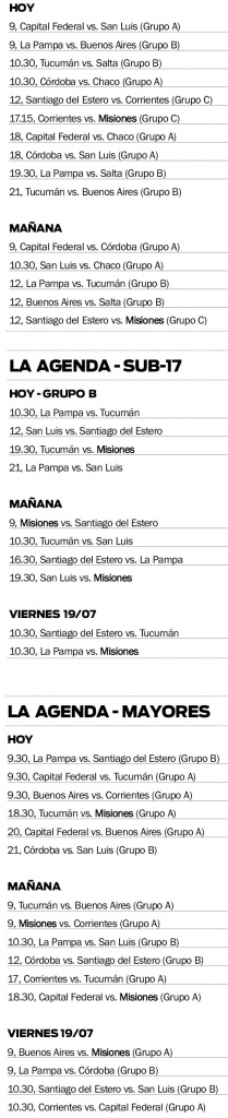 La continuidad para las chicas de primera será este jueves con una doble jornada, midiéndose en primer turno, desde las 9, frente a Corrientes y luego, a partir de las 18.30, ante Capital Federal. El viernes, en tanto, cerrarán la fase de grupos enfrentando a Buenos Aires, desde las 9.