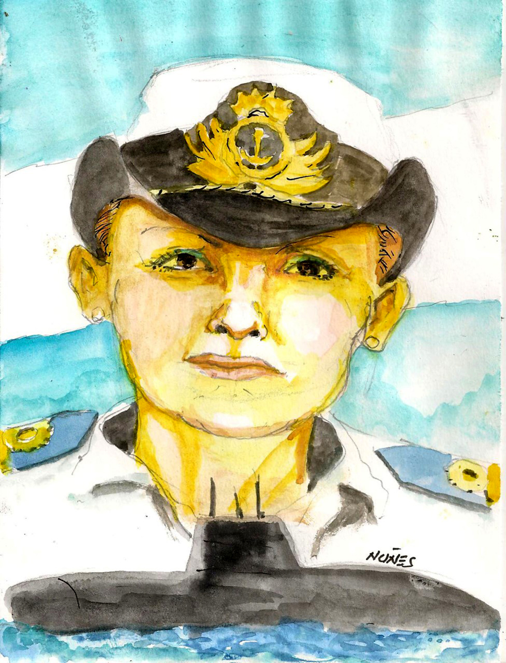 Es Eliana María, primera oficial submarinista de Sudamérica, lleva sangre polaca en sus venas giratorias, ama el mar y sus misterios, temprano quiso ser marinera, surcar los mares encabritados por amor a su patria, jugar con las hélices de las sombras submarinas, anudar los grifos de los mares a sus manos de seda, hurgar con su mirada luminosa los estratos hambrientos de este mar precipitado, el Atlántico surco de agua nutrida de dolor y fuego.
