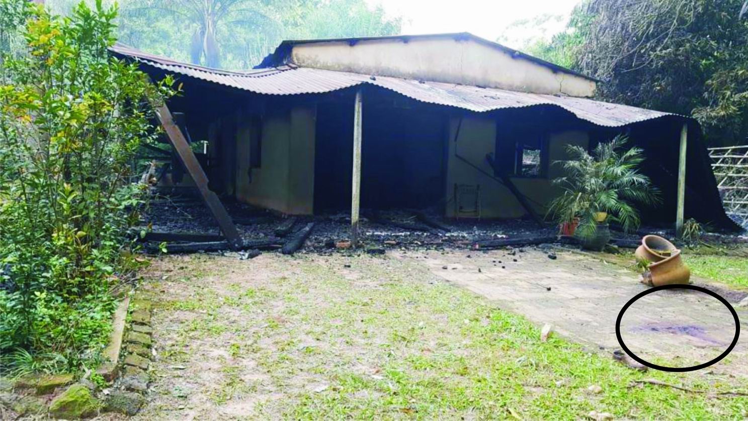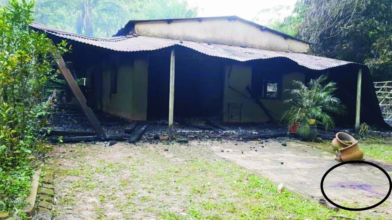 El o los autores habrían cometido la agresión en el patio delantero de la vivienda, donde quedó una mancha similar a sangre. Después habrían arrastrado el cadáver hasta el interior del inmueble para generar un incendio.