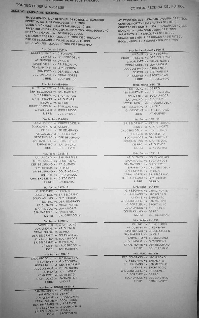 La primera fecha de la zona en donde juega el Colectivero tendrá estos encuentros: Douglas Haig vs. Chaco For Ever, Sarmiento (Res) vs. Defensores VR, Juventud Unida (Gualeguaychú) vs. Central Norte, Güemes vs. Union (S), Las Parejas vs. Sp. Belgrano, San Martín de Formosa vs. Gimnasia CDU. Tendrá fecha libre Boca Unidos.