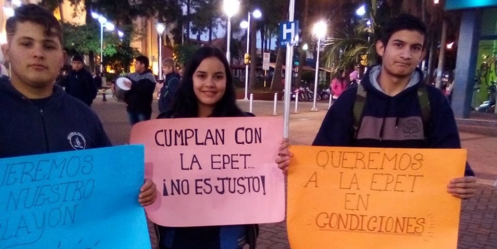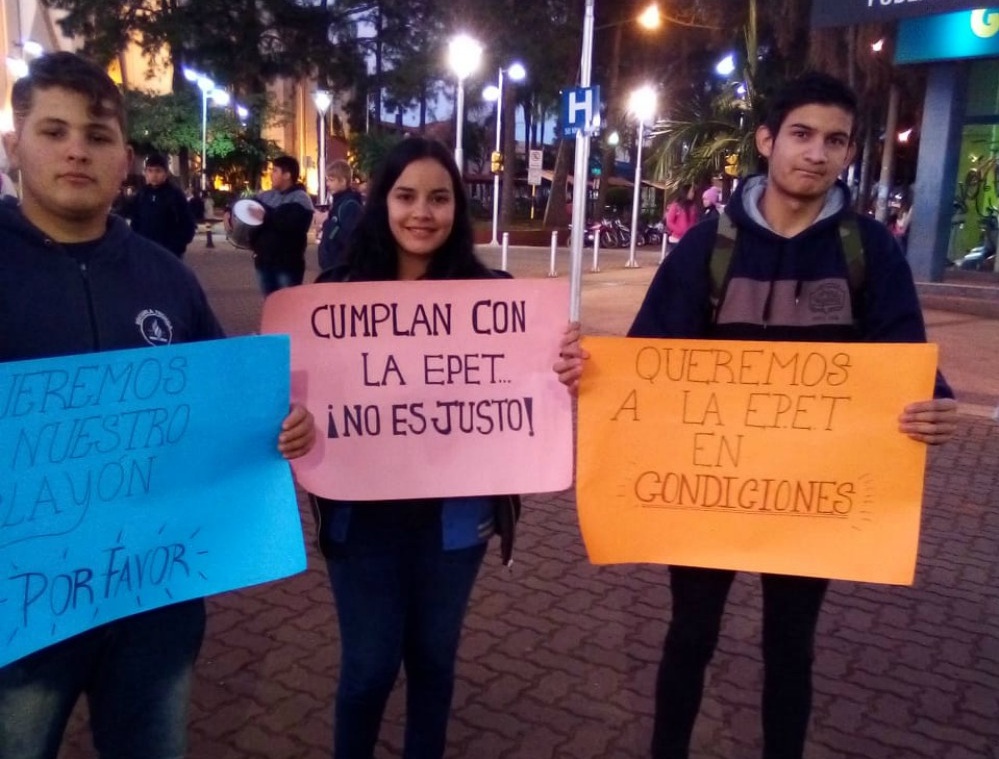 Durante la marcha, los alumnos manifestaron que necesitan el espacio para el desarrollo de las clases de Educación Física. Si bien se utiliza parte de lo que quedó en pie, la realidad es que no es apto para las actividades y representan un riesgo a la integridad de la importante comunidad educativa.