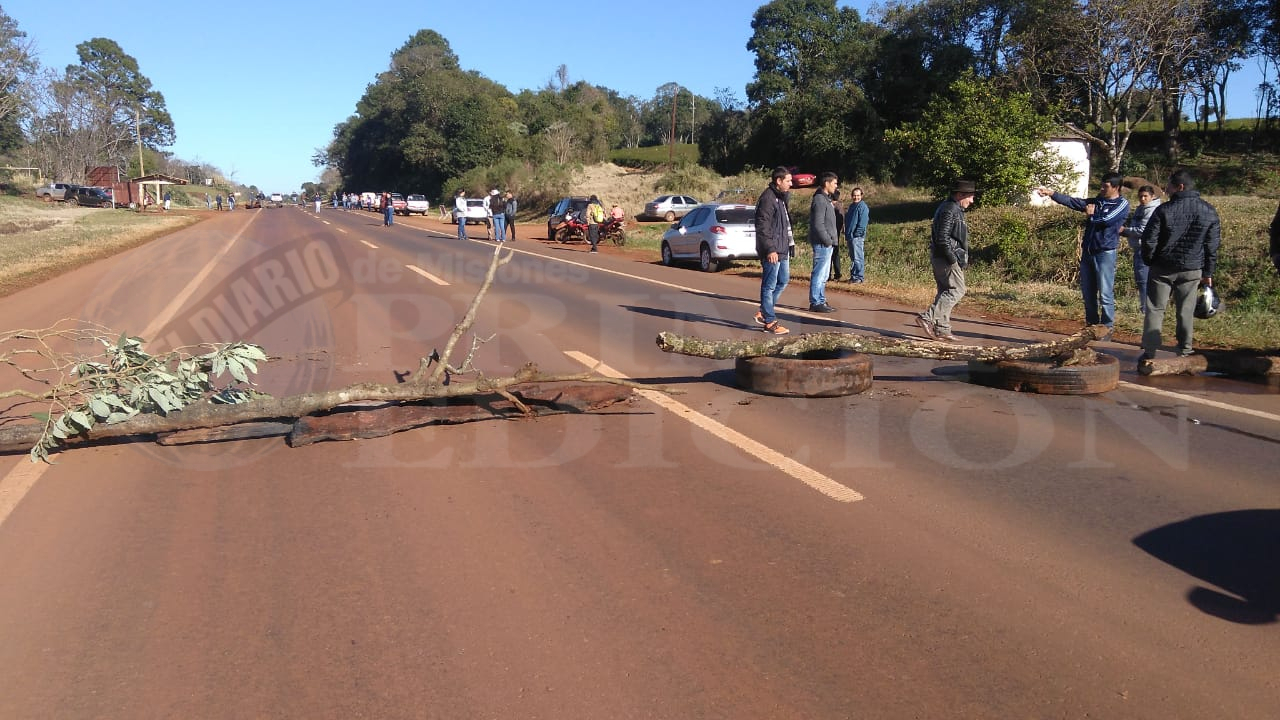 Un grupo de tabacaleros cortan la ruta nacional 14, a la altura del kilómetro 1255 en San Vicente, en reclamo de la incorporación de los 2.700 productores que quedaron fuera del circuito.