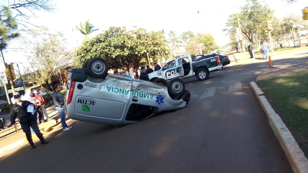 Esta mañana cerca de las 9:20, se tomó conocimiento de un siniestro vial en la avenida Libertador intersección calle Abel Siñuka, sin personas lesionadas, que terminó con el vuelco de una ambulancia.