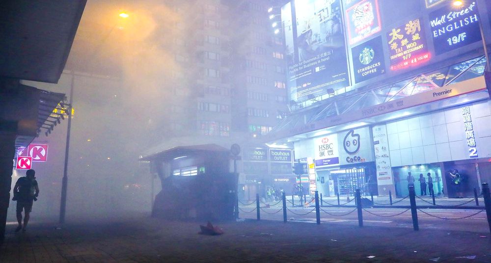 Tenth weekend of the #AntiELAB protests in Hong Kong, with another flareup around a police station (this time, Sham Shui Po). Forward charge with a salvo of tear gas. You know, the usual. pic.twitter.com/FuPLquSmVN