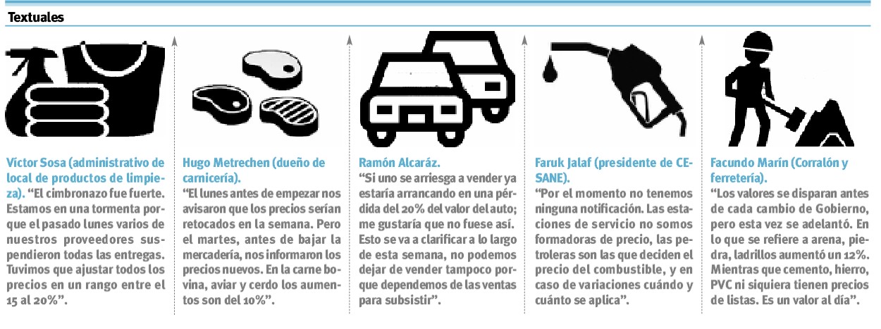 Sin embargo, Beigbeder dijo que no es la primera vez que pasa y que ya se han repetido muchas veces estas situaciones. “El aumento del dólar hace detener las ventas, hace que el comerciante más pequeño se asuste, que la ama de casa piense que esto va a ser para largo tiempo y no, ninguna de estas opciones. Simplemente se están acomodando un poco las cartas y una vez que esto termine de pasar -que supongo será mañana o pasado- si el dólar se mantiene en estos valores y veremos en cuanto aumenta. Y depende de la espalda del proveedor será que va a ser inmediato o dentro de 10 o 15 días. Antes del fin de agosto ya van a estar todos los precios en la góndola con el nuevo aumento”, explicó.