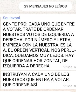 Como fundamento el abogado del puertismo presenta fotos de los cuartos oscuros y conversaciones de un grupo de WhatsApp del PRO donde supuestamente se induce a los votantes a modificar el orden de las boletas para obtener beneficio.