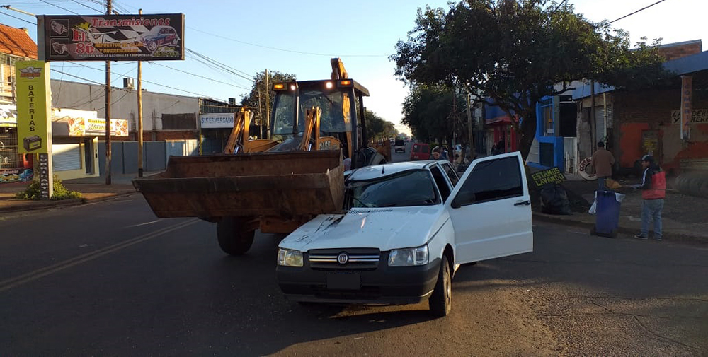 Choque entre una retroexcavadora y un automóvil en Posadas