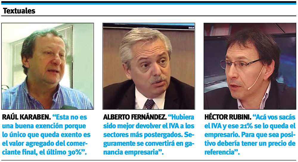 “Acá vos sacás el IVA y ese 21% se lo queda el empresario, así de simple. Para que tenga un impacto positivo debería estar complementado por un precio de referencia, con free market esto no funciona”, opinó.