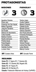 Otra vez fue empate. Los seleccionados femeninos de hockey de Misiones y Paraguay siguen sin sacarse ventaja. Ayer sábado igualaron 3-3 en el tercer partido de la serie de cuatro amistosos organizados con el objetivo de prepararse para lo que se viene: en el caso de Misiones, el Nacional de Selecciones a disputarse en octubre en Mendoza; en el caso de Paraguay, una gira por Uruguay.