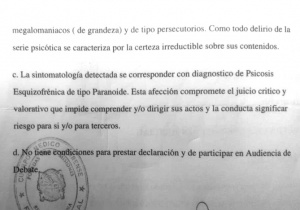 Si bien Felicitas completó el papeleo personal requerido, el caso sigue sin sentencia. De hecho, este año ya debió recomenzar el juicio, pero se suspendió porque la defensa del acusado por el crimen, Maximino Barúa Britez, había solicitado prueba psiquiátrica (ver foto). La pericia determinó Esquizofrenia, algo que, por ahora lo incapacitaría para enfrentar el juicio. Se trata de una patología tratable, por lo tanto, cuando la medicación empiece a mostrar mejorías en Barúa Britez, sin dudas se sentará en el banquillo de los acusados, confió a este Diario una fuente judicial ligada al caso.
