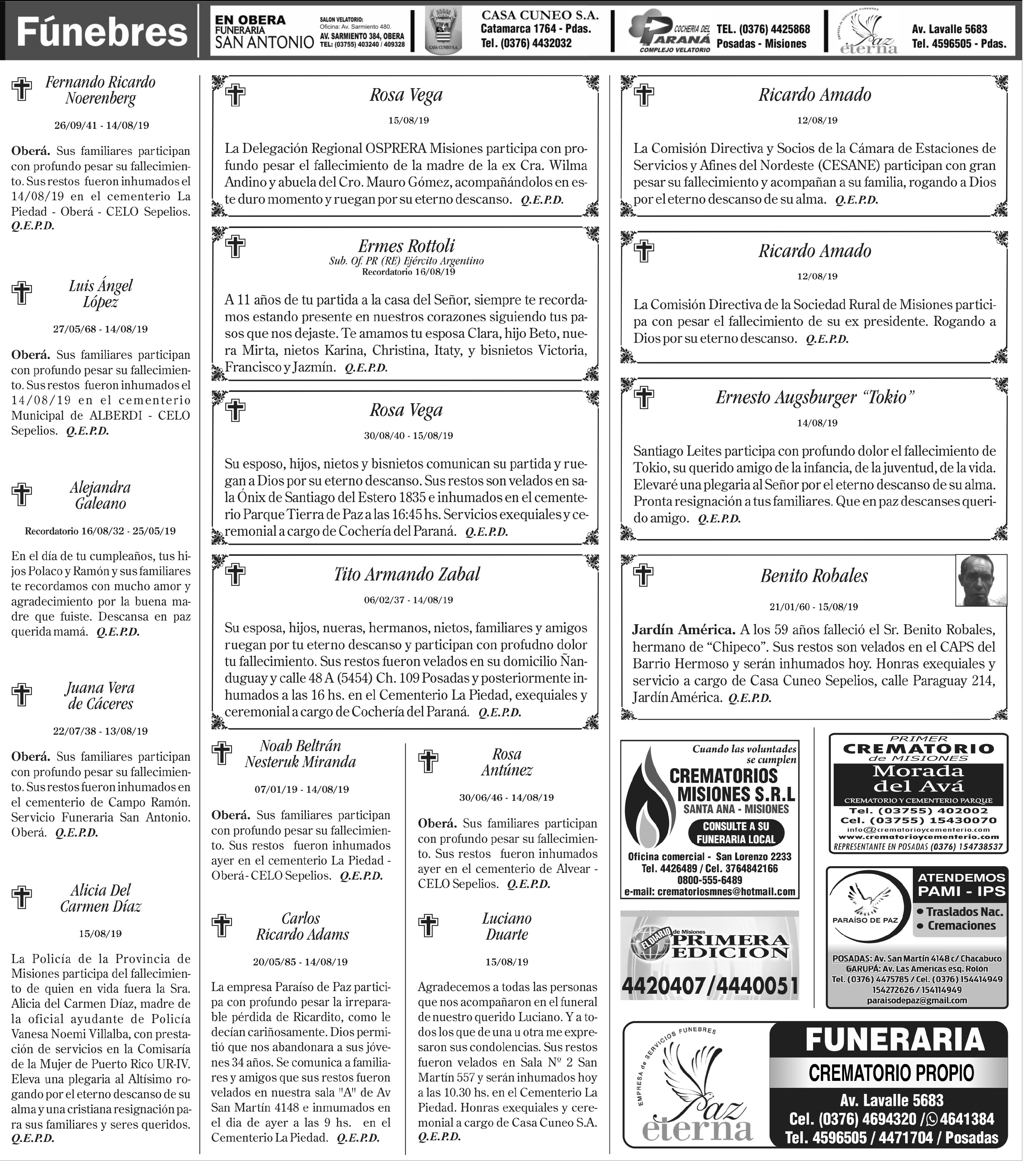 Fúnebres 16-08-2019