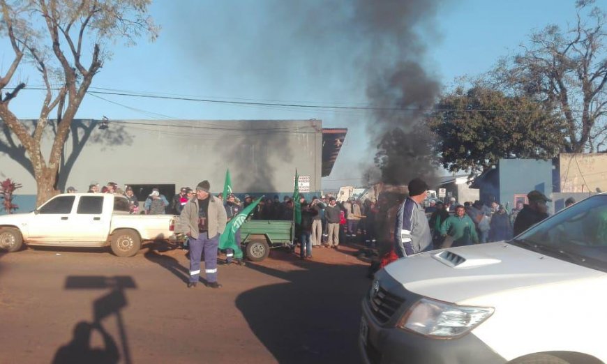 Empleados municipales de Oberá realizan este lunes una medida de fuerza en la zona de la cantera municipal y otras áreas. Reclaman un aumento del sueldo básico.