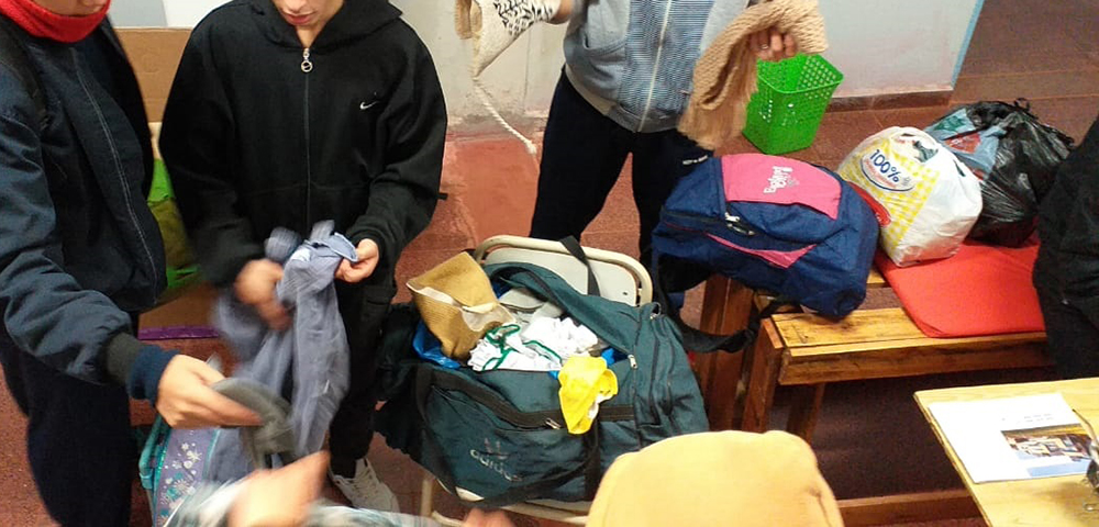 “Es impresionante la cantidad de cosas que llevaron los alumnos del colegio, pantalones, abrigos, útiles, mochilas, de todo. Es emocionante, porque como les decía a los alumnos, nosotros no somos millonarios, pero lo poco que tenemos lo podemos compartir, aunque sea un par de medias que ya no ocupen más, porque hay gente que no tiene ni eso, y esa es la esencia que nosotros promulgamos en la escuela, la EPET solidaria, como lo llamamos”, explicó Domínguez.