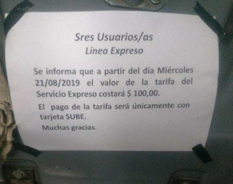 La noticia fue un “bombazo” para los usuarios quienes, otra vez, fueron castigados por la empresa, la única autorizada a prestar el servicio entre ambas ciudades. Otro dato que llamó la atención es que “solamente cobrará el pasaje con la tarjeta SUBE”, una decisión que viola la reglamentación provincial y nacional, que permite el pago del pasaje con efectivo.