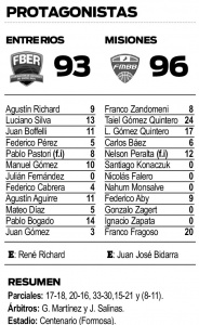 PAREJO. Misiones tuvo que batallar hasta el final para llevarse el triunfo en tiempo suplementario por 96 a 93.