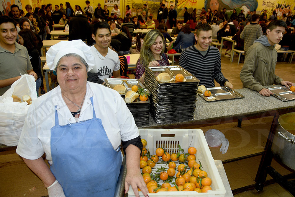 Actualmente, como está pronta a jubilarse (posiblemente salga el trámite a fin de año) y es por eso que más que nunca está en contacto con los estudiantes porque es una de las encargadas de servir lo preparado.