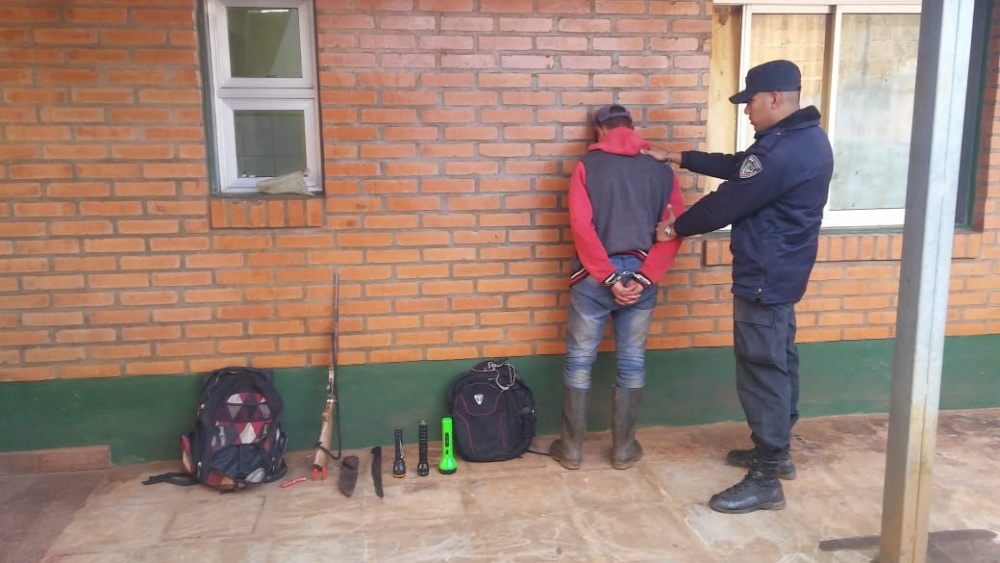 Este domingo por la tarde en Picada Itatí, efectivos del Destacamento Fracrán, dependiente de la Comisaría San Pedro UR VIII, detuvieron a Darío R. de 19 años cuando fue sorprendido en plena caza ilegal.