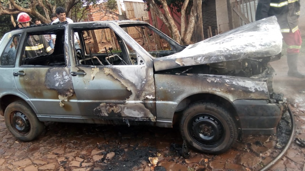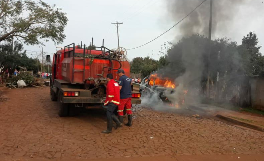 El conductor manifestó que momentos antes circulaba sin pasajero por el barrio apostoleño, se le apaga el automóvil, sintió olor a combustible, y al intentar dar arranque comienza a incendiarse, abandonando el mismo.