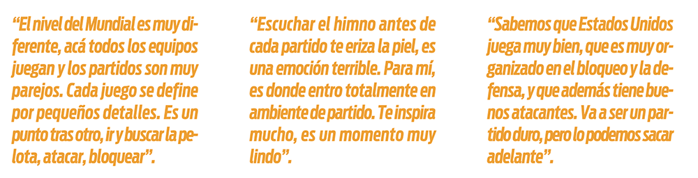 El actualmente jugador de Defensores de Banfield, en la Liga Metropolitana, aseguró a este Diario que se encontró con un nivel muy superior al que compite a diario en nuestro país. “El nivel del Mundial es muy diferente, acá todos los equipos juegan y los partidos son muy parejos. Cada juego se define por pequeños detalles, es muy distinto al nivel que uno está acostumbrado. Es un punto tras otro, ir y buscar la pelota, atacar, bloquear. Eso hace todo muy complejo”, explicó Wilson.