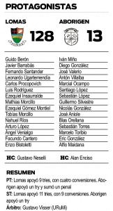 Poco le importó a Lomas, que sin piedad volvió a golpear a los 36 y 40 minutos con tries de Mathias Morcillo y Ugartemendía para cerrar, con varias conversiones de Enzo Bistoletti, un resultado final histórico: 128 a 13.