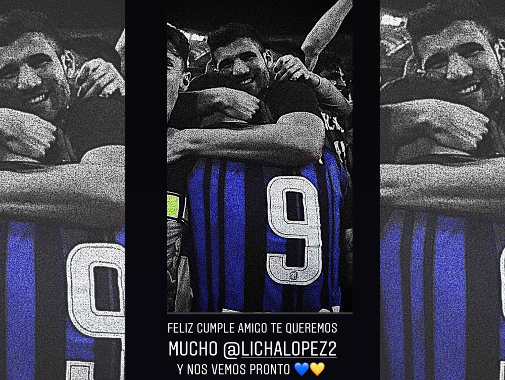 “Feliz cumple amigo, te queremos mucho. Y nos vemos pronto”, escribió acompañado de un corazón azul y otro amarilla con la imagen de su marido y López fundidos en un abrazo, con la camiseta del Inter.