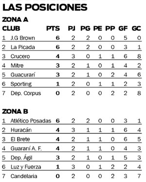 La jornada inició el pasado jueves con la goleada de Crucero del Norte ante Andrés Guacurarí por 5 a 3; mientras que los encuentros que fueron suspendidos el sábado, debido a las inclemencias del tiempo, serán reprogramados este lunes.