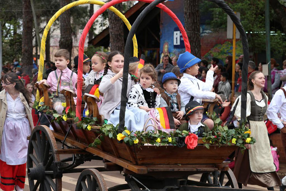 La Colectividad Japonesa con su soberana Carol Belén Cantero, recreó la cultura del sol naciente con sus trajes, danzas y música. Luego fue el turno de la Brasileña, cuya reina es Milena Fleck Carvallo, llevando una imponente carroza alusiva al mate, símbolo de hospitalidad riograndense, costumbre heredada de los pueblos originarios.
