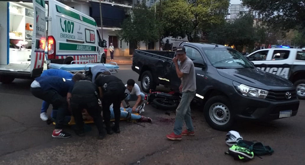 El motociclista perdió casi la totalidad del pie derecho en la colisión hasta la altura del tobillo, permanece internado en el sector de Emergencias del Hospital Ramón Madariaga.