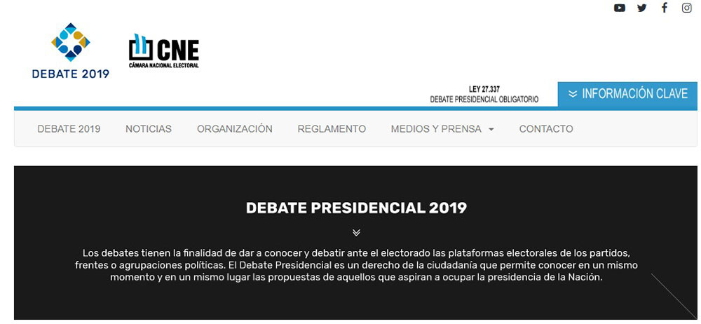 Se trata de debate.electoral.gob.ar, donde se puede encontrar información general, conocer las novedades y cuestiones organizativas de los debates, para los cuales los seis candidatos presidenciales ya confirmaron esta semana su participación.