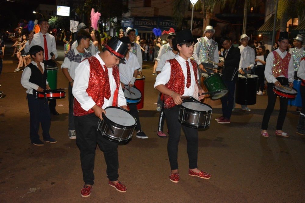 A medida que iban pasando las escuelas el público comenzaba a poblar las veredas de la calle Belgrano, con la intención de disfrutar del show y la algarabía estudiantil, que dio inicio el Colegio Cristo Rey, continuando luego con la actuación de la Escuela de Comercio, Escuela Normal,  luego fue el turno del Instituto Santa Bárbara, el  Colegio La Inmaculada, Colegio San Josafat, cerrando la primera noche la EPET Nº 5.