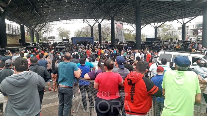 Paseros de Ciudad del Este bloquean parcialmente el Puente de la Amistad, que une Ciudad del Este (Paraguay) con Foz do Iguazú (Brasil), contra los abusos que cometen los encargados de la Coordinación Operativa de Investigación Aduanera (COIA), Germán Zonetti y de la Unidad Interinstitucional para la Prevención, Combate y Represión del Contrabando (UIC), Emilio Fúster.