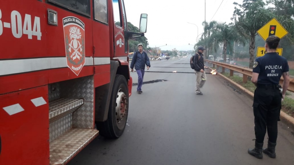 Según se supo, unos 200 trabajadores de la Comuna quemaron cubiertas sobre la cita asfáltica en reclamo de mejoras salariales, entre otros pedidos, según el parte de la Policía de Misiones, que se hizo presente en el lugar.