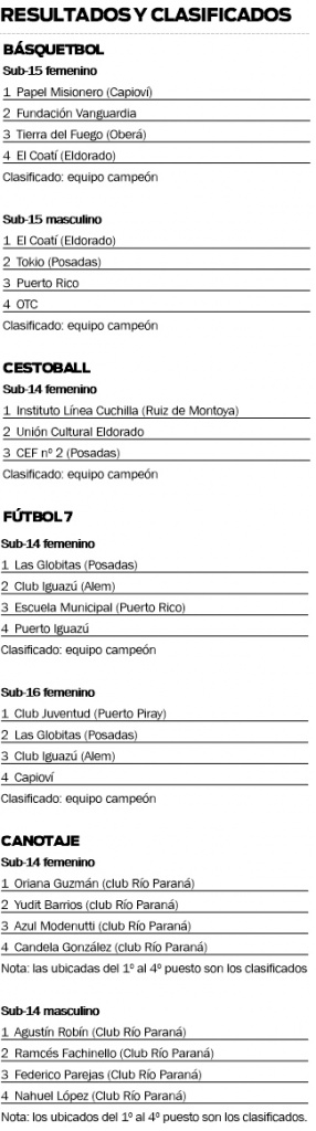 La actividad de los Juegos Deportivos Misioneros no para y en toda la provincia se siguen disputando las finales, conociendo a los campeones y a los que representarán a la tierra colorada en los Juegos Nacional Evita, que se desarrollarán del 6 al 11 de octubre en Mar del Plata.