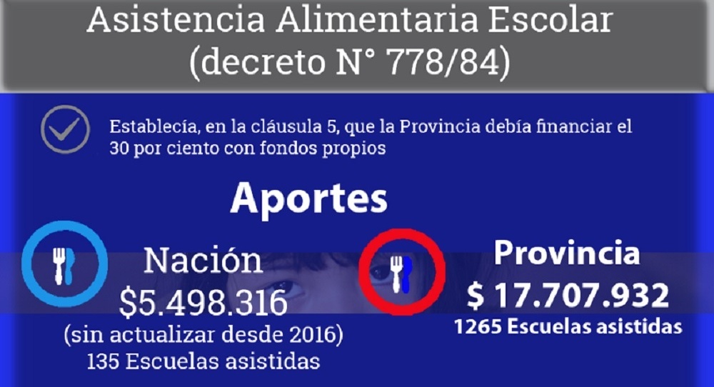 “Actualmente el 80% del financiamiento de los comedores escolares recae en el presupuesto provincial. De un total de 1.400 unidades educativas entre las que se incluyen escuelas núcleo y aulas satélites, más de 1.200 son financiadas por la provincia y sólo 135 lo son por Nación”, señaló Aquino.