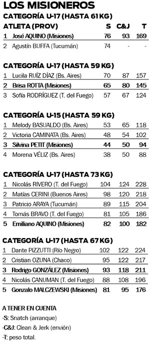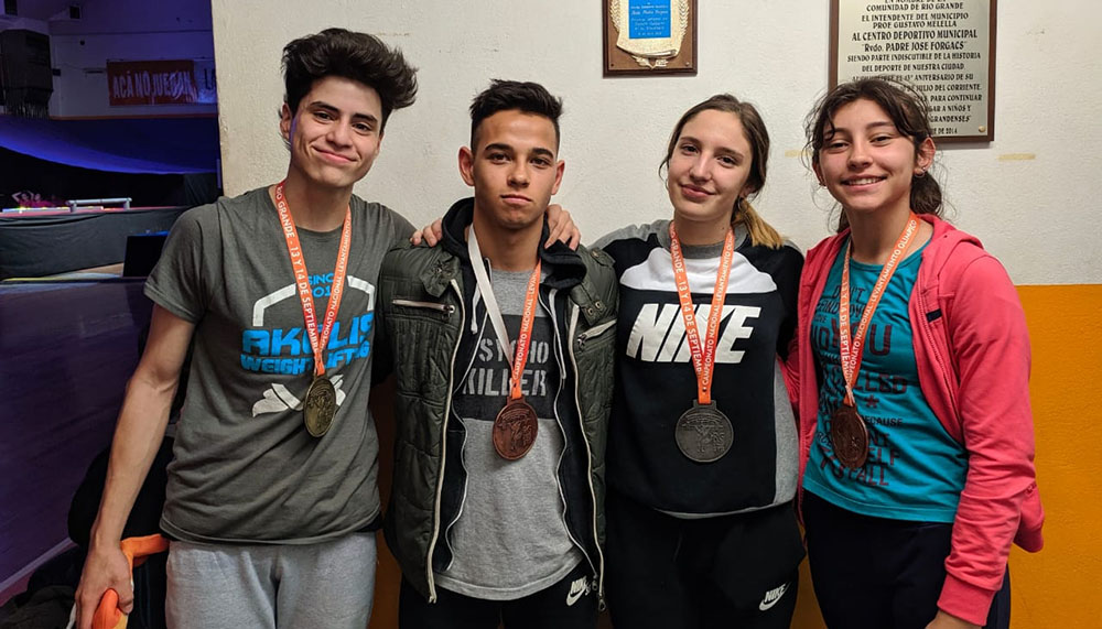 Al bronce que Rodrigo González había ganado el viernes se sumaron el oro del obereño José Aquino, la plata de la también obereña Brisa Rotta -ambos del Akclis Gym- y el bronce de la posadeña Silvina Petit (del Gladiador Gym).