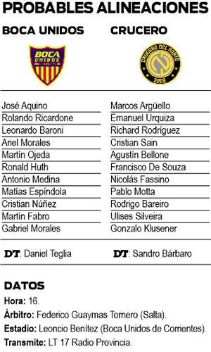 Por la tercera fecha de la zona 1, Crucero del Norte viajará a Corrientes para enfrentar a Boca Unidos. El encuentro tendrá lugar en el estadio Leoncio Benítez, a las 16 y no a las 18 como se había anunciado en un principio. El árbitro será Federico Guaymas Tornero de Salta, que tendrá como asistentes a Fernando Brillada (Resistencia) y Gustavo Benites (Salta).