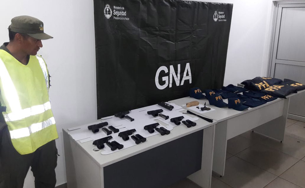 Cuando los gendarmes comenzaron a revisar las pertenencias que había dentro del auto, se llevaron una gran sorpresa. Encontraron siete pistolas: cuatro calibre 380, dos 9 mm, una calibre 40 y silenciadores. Ninguna tenía documentación que acreditara su origen ni su compra, pero había más. Los brasileños transportaban también precintos, camperas, chombas y gorras con inscripciones de la Policía Federal Argentina. Ni siquiera eso era todo: en una mochila les encontraron 162 gramos de marihuana.