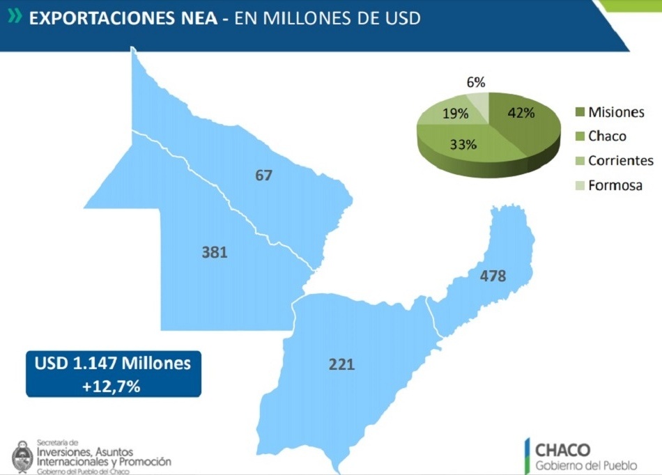 Estas cifras marcan un crecimiento de la facturación exportadora de la región NEA en el orden del 12,7% con relación a 2017 y representan 1,9% del total nacional.