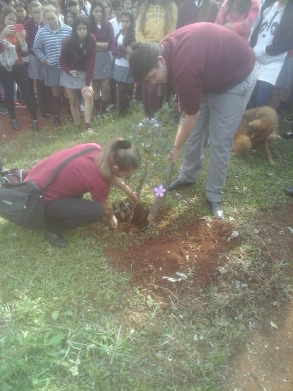 Al cumplirse un mes de su muerte, alumnos y docentes de la Escuela de Comercio 10 homenajearon a Víctor plantando un árbol en la vereda del establecimiento, frente al lugar donde fue asesinado.