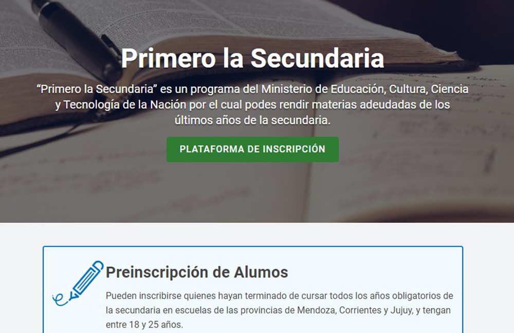 “Primero la secundaria” busca que los jóvenes que deben materias, pero que hayan concluido la cursada de sus estudios en un establecimiento de gestión estatal, terminen la escuela. Es un programa del Ministerio de Educación, Cultura, Ciencia y Tecnología.