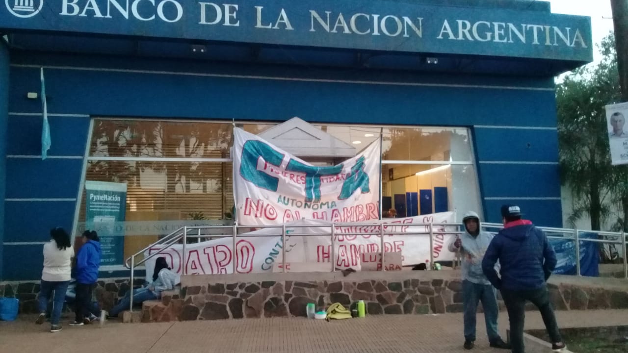 Se trata de integrantes del Sindicato de Tareferos y Trabajadores Temporarios junto al Movimiento Campesino Liberal iniciaron anoche un acampe frente a la sede del Banco Nación de Montecarlo ante la falta de pago en el juicio contra la ANSES por estafa realizada con los salarios familiares.
