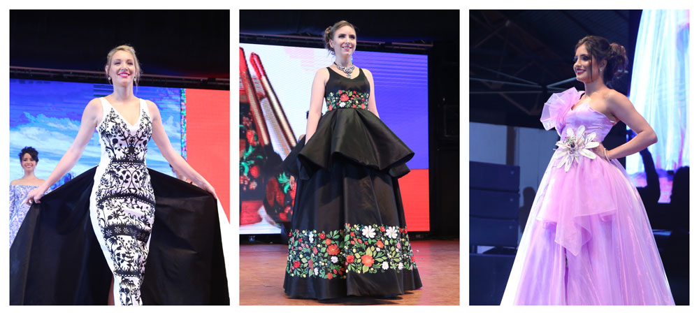 Después de haber participado en Cataratas Day, a Lutz le quedaba pendiente hacer algo para Oberá. La iniciativa coincidía con los 40 años de la Fiesta Nacional del Inmigrante, de la que es amante y de la que participó toda la vida. “Durante muchos años vestí a las reinas pero consideré que este año tenía que ser algo diferente, algo que explotara. Entonces me puse a hacer un diseño que represente a cada colectividad pero que no sea el traje típico que estamos acostumbrados a ver. Me puse a trabajar con cada una, a investigar, a consultar con los integrantes, presenté el proyecto a la Federación de Colectividades, me aprobaron y en enero empecé a trabajar a full”. Y así fue durante nueve largos meses.