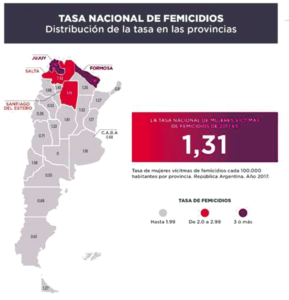 “Aquí tienen el 0,8% de la tasa nacional que es de 1,31% cada 10 mil habitantes. No obstante hay provincias más comprometidas, como Salta y Santiago del Estero, que triplican la tasa nacional”, se explayó la coordinadora de Género del Ministerio de Seguridad.
