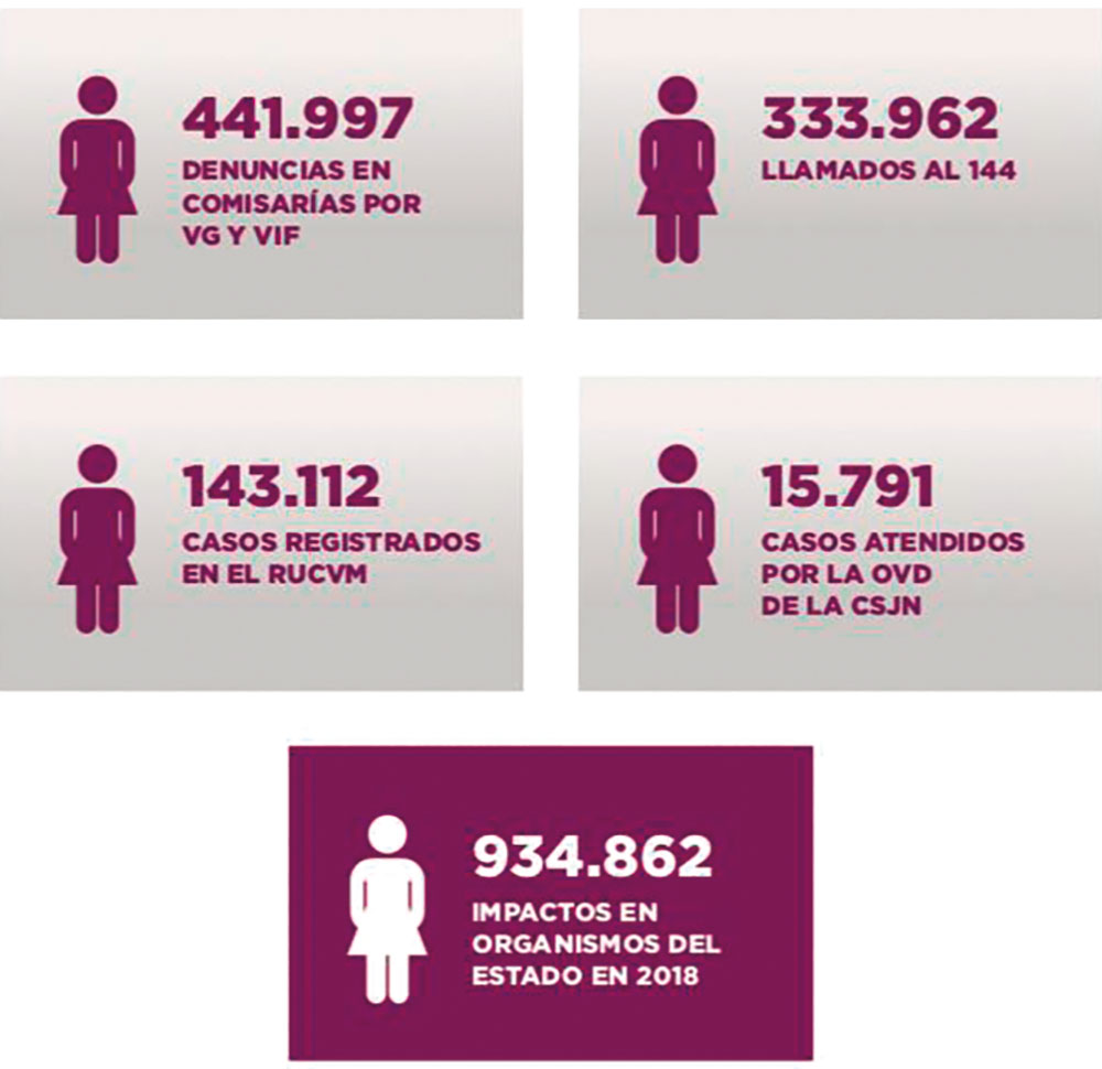 A grandes rasgos aseguró que solamente en 2018 hubo casi un millón de impactos en diferentes organismos del Estado por violencia de género, sobre una población de 20 millones de mujeres.