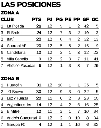 En la Zona A, La Picada sigue cómodo en la cima de la tabla, la que lidera con 28 unidades tras vencer a Bartolomé Mitre, en lo que fue el cruce interzonal.