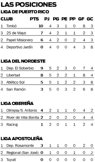 Con este resultado, Timbó se consolida en la cima de la zona en la que actúan los equipos de la Liga Regional de Fútbol de Puerto Rico.
