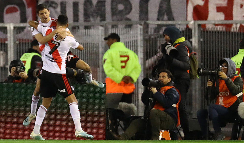 Precisamente el VAR tuvo protagonismo en la primera jugada de riesgo, cuando Esteban Andrada le tapó un remate a Nicolás De la Cruz y en el rebote Emmanuel Más derribó a Matías Suárez. El consecuente penal, chequeado en las cámaras por Claus, fue transformado en gol por Borré con un remate al medio y a media altura, igual al que definió la clasificación a cuartos de final ante Cruzeiro en Brasil en definición desde los 12 pasos.