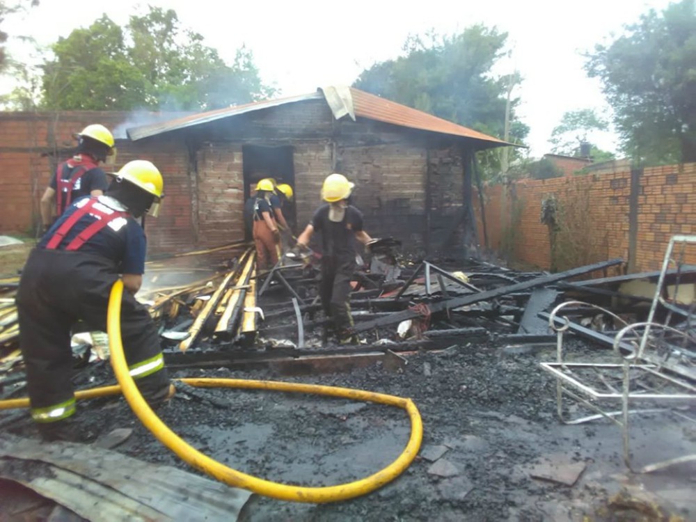 Tres dotaciones de Bomberos Voluntarios y la Policía de la Provincia, incluso la ambulancia debieron trabajar para sofocar el terrible incendio que dejó sin pertenencias a los dueños de casa.