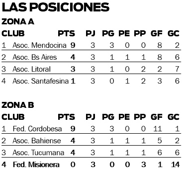 En tanto que el viernes, en cancha de Godoy Cruz, Misiones jugó ante la Asociación Tucumana y fue otra derrota, esta vez por 4-1. Paula Gutiérrez y Ana Gray pusieron en ventaja a las tucumanas; Sol Duarte convirtió el descuento para Misiones pero Valentina Garretón y Sofía Darnay pusieron cifras definitivas para las tucumanas.