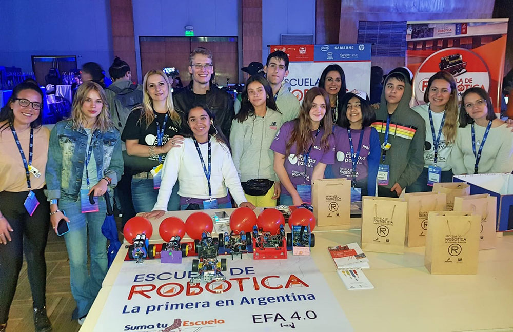 Junto a los alumnos se encuentran los facilitadores de la Escuela de Robótica: Antonella Sánchez, Matías Ríos, Giovana Blanco y Javier Berger. También acompañan, el Director de Suma tu Escuela Hernán Insaurralde, La Diputada Nacional Flavia Morales y la Coordinadora de la Unidad de Gestión en TIC a Cargo de la Escuela de Robótica Soledad Basualdo.